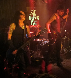 | Dead City Ruins/The Deep End – Bendigo Hotel, Melbourne, Australia, 17th August, 2013 I was very excited when I heard 'Dead City Ruins' was playing at the 'Bendigo Hotel'. This is one of my favorite live music venues. The band room is dark and dingy like all good band rooms should be. The stage is small with barely enough room to swing a cat but there is plenty of floor space for punters in front of the stage. There are few tables, so drinks must be held and an absence of bar stools means everyone is standing for the band. The other thing I love about this place is the front bar. My friends and I refer to this as the 'Voodoo' room on account of the sculls and carved wood decorations adorning the bar and walls. The owner is a big 'tequila' connoisseurand there is a huge selection of different tequilas available, most under lock n key in a glass display cabinet. The event was a fund raising show for ‘Dead City Ruins’ upcoming UK tour with 'Skid Row' and 'Ugly Kid Joe’. The band was supported by local rockers 'The Deep End', 'Guns'n'Roses' tribute band 'Rocket Queen' and 'Black Aces' from the US. In keeping with my usual form, I missed the first 2 acts but managed to arrive in time to catch 'The Deep End' mid way through their first song. The band was loud and hard with a familiar sound, similar to AC/DC and Guns’n’Roses’ to the point where I expected them to launch into an AC/DC cover at anytime. The lead singer 'Dale' was full of energy and heaps of fun. He defiantly liked the sound of his own voice resulting in a bit too much banter between songs. At one stage he made reference to the size of the stage, saying he felt like ducking to avoid being hit by guitar. By the end of the set he abandoned the stage completely and finished off the last 2 songs in the audience. Nearing the end of the show Dale gave us a reminder of why we were there and encouraged everyone to buy a Dead City Ruins T-shirt rather than a Deep End's T-shirt to raise more funds for the tour. DCR Set List - Del Toro, Shot Through, DIB, Hapenzella, Blues, Dio, Broken Bones, Where Ya Gonna Run. After a short interval 'Dead City Ruins' took to the stage, beginning the show with an awesome instrumental. I was immediately impressed and didn't even notice the lead singer Jake was absent from the stage until he came out from the shadows and began singing. There was allot of swinging of guitars and well coordinated swinging of hair. Despite the size of the stage the guys managed to move around and keep the energy going. As Jake worked the vocals he had some creepy horror movie eyes going on. It wasn't convincing though, he seemed to be having too good a time. The rest of the band kept more serious demeanors but still seemed to be enjoying themselves.